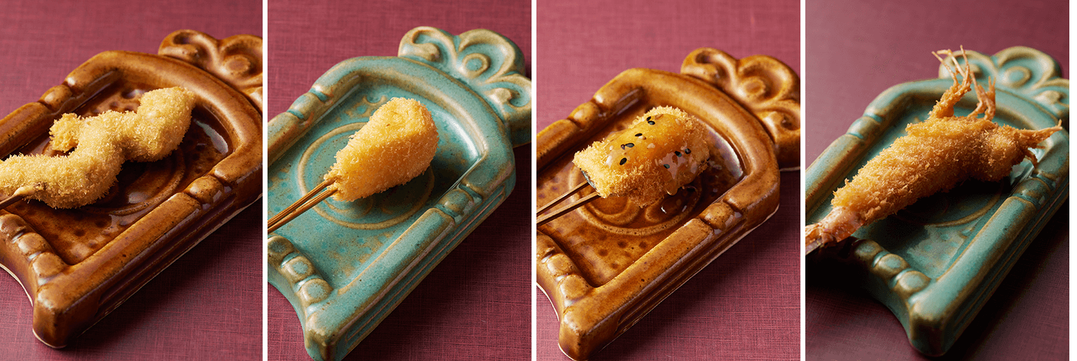 創業時から受け継ぐこだわりの味を、揚げたての串とともにご堪能ください。