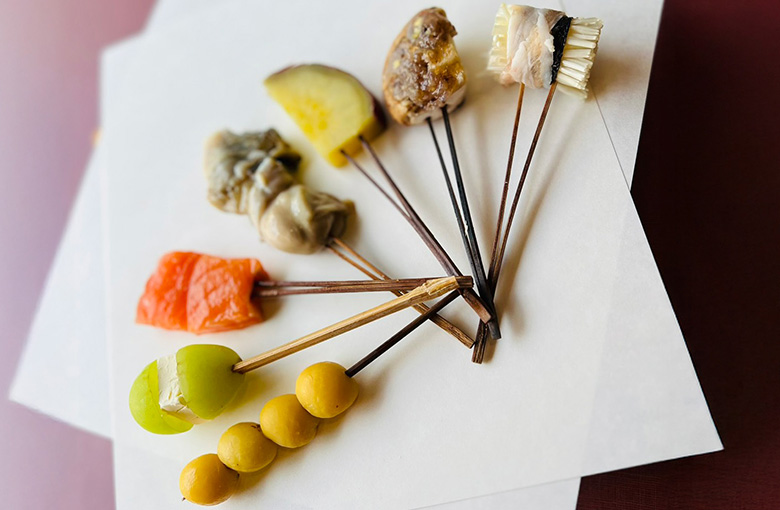 どうぞご満足されるまでお召し上がりください。串の種類は時季によって変わることから、
